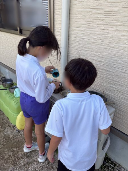 一度葉っぱを混ぜた水からネットを使って濾過もしていて、日々遊びを見つけていく子どもたちから目が離せません🤭🌱