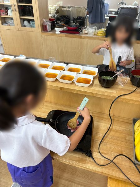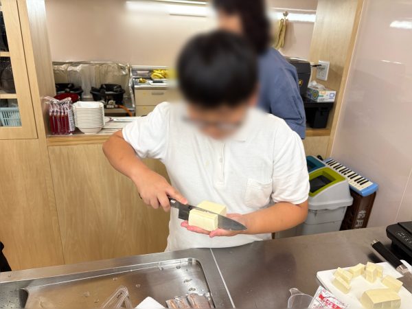 子どもたちは、豆腐を切り、食材を炒める作業をしました🙌🏻