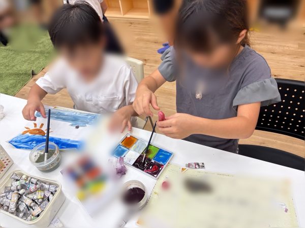 室内では絵の具を使ってお絵描きをしている子が🎨
