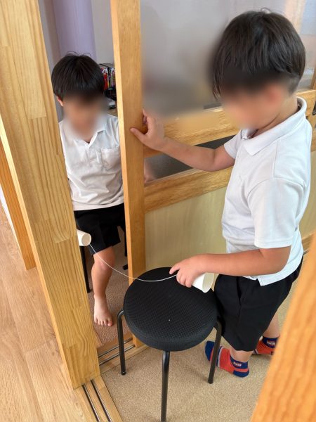 糸電話で扉越しにお話ししようとしている子もいます☎️