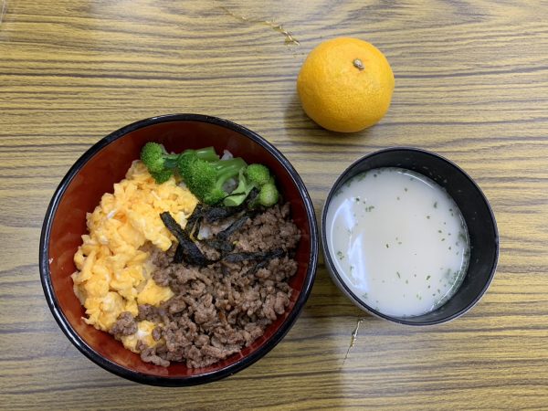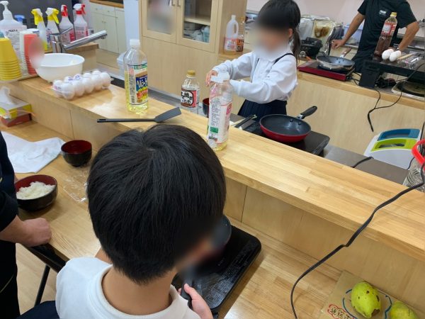 子どもたちは自分で卵やお肉を炒め、ブロッコリーと一緒にご飯の上に綺麗に盛り付けました😋🥦