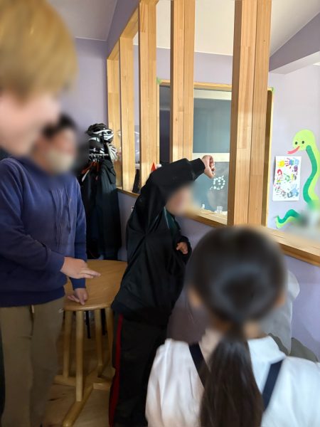 トッポのお菓子が人気だったようで、自分の顔を比べてみたり、急いで食べてみたり!