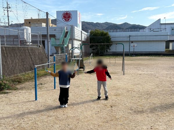 縄が少し長かったようで、自分たちで長さを調整しています🌼
