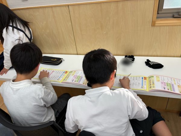 ランドセルを置いてさっそく宿題📚