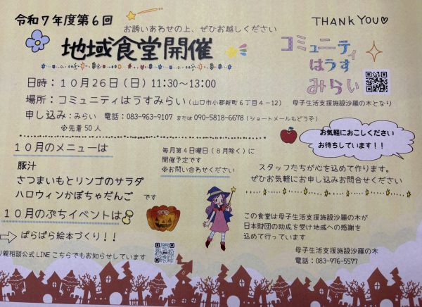 地域食堂を、開催します! ぜひお気軽にお問い合わせ、お申し込みください😄